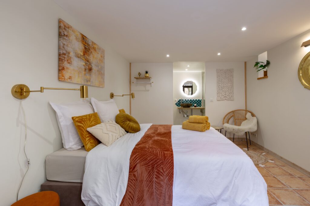 « La chambre Songe » n’est disponible que pour la réservation suite de 3 à 4 personnes, elle complète la « chambre Brume » avec la grande salle de bain